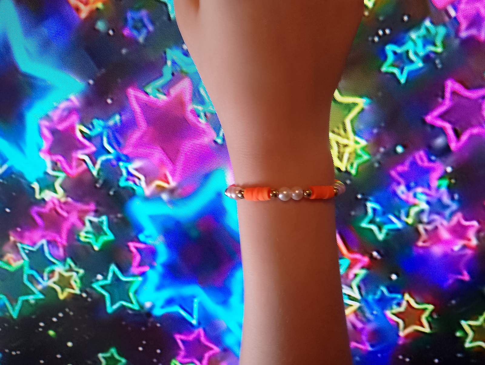 Ръчно изработена гривна от оранжеви мъниста със златисти елементи