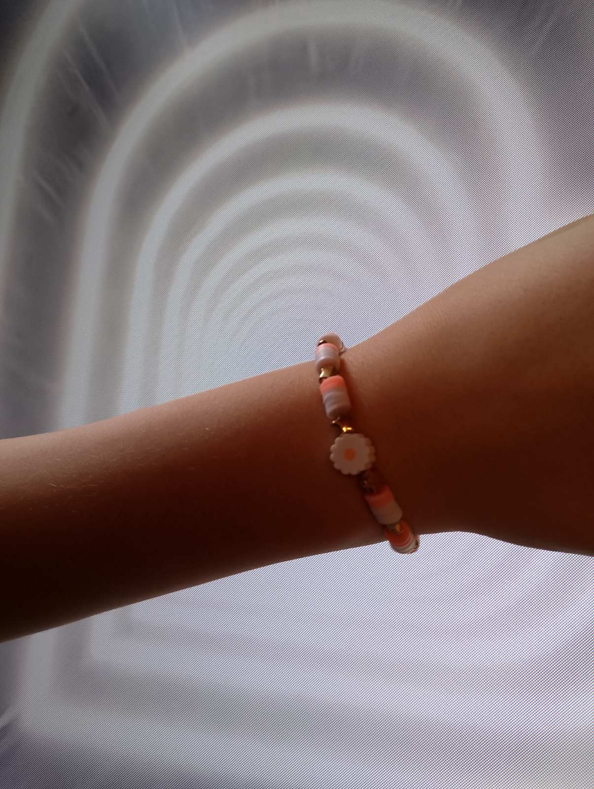 Ръчно изработена гривна от бели и розови мъниста с орнамент цвете маргаритка